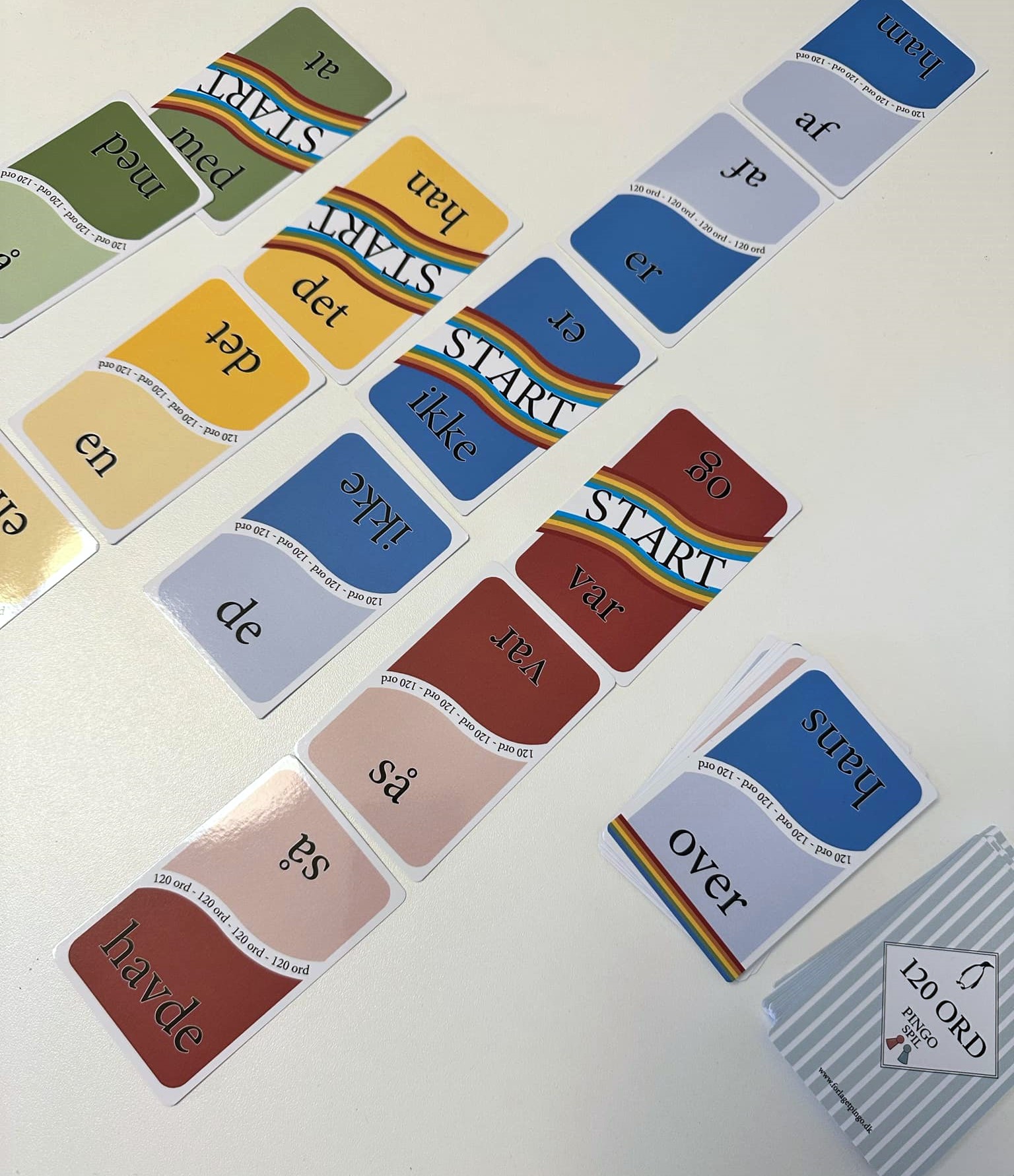 Træn de 120 ord mens du spiller et sjovt spil. Her gælder det om at komme af med alle sine kort først. Spillet udfordrer børnene i at læse nogle af de de 120 mest brugte ord i det danske sprog.